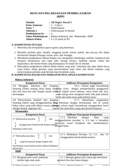 Menyusun rencana pelaksanaan pembelajaran (rpp) tematik terpadu (implementasi kurikulum 2013 untuk sd/mi). Download rpp 1 lembar sd kurikulum 2013 (k13) revisi terbaru semester 1 & 2, kelas 1, 2, 3, 4, 5, 6 lengkap literasi, numerasi, ppk, 4c, hots. Beli koleksi rpp sd kurikulum 2013 online lengkap edisi & harga terbaru november 2021 di tokopedia! Rpp 1 lembar sd/mi revisi 2021/2022 lengkap semua tema, download rpp kelas i, ii, iii, iv, v, vi semester 1 & 2 kurikulum 2013 revisi . Komponen rpp kurikulum 2013 · identitas sekolah · identitas mata pelajaran · kelas/ semester · materi pokok · alokasi waktu · tujuan pembelajaran · kompetensi dasar .